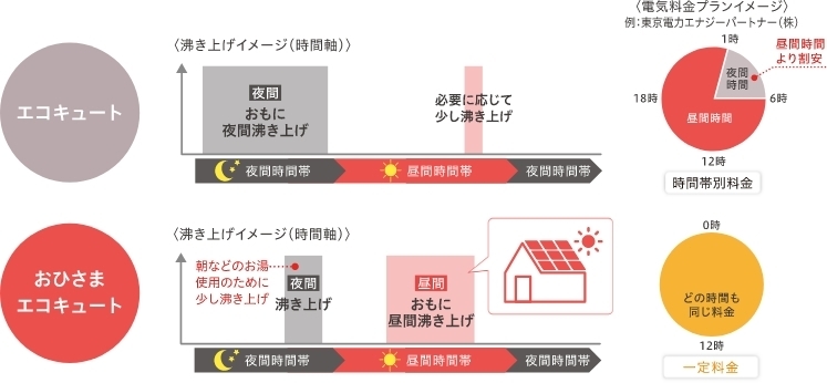 簡単に言うと、**「夜にお湯を沸かす」から「太陽が出ている昼間に沸かす」**へシフトしたのが最大の特徴です。